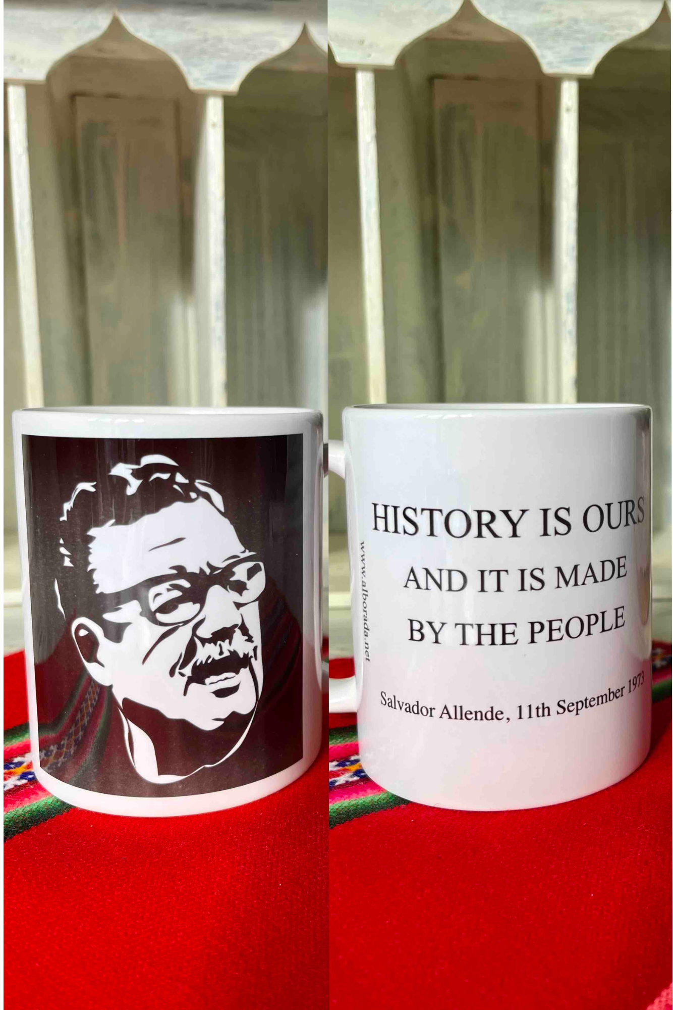 Original Alborada design. Image of former Chilean president Salvador Allende on one side, and his inspiring quote: "History Is Ours. And It Is Made By The People" on the other.